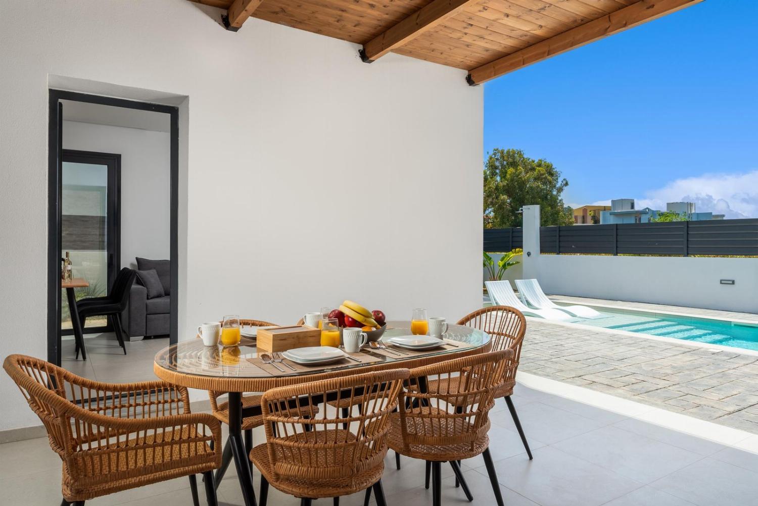 Villa Salty Sun 5 is a detached vacation rental property located in Kremasti, Rhodes. Villa Salty Sun 5 can sleep up to 5 people (4 adults and 1 child) with 2 bedrooms (additional 1 single sofa bed) and 2 bathrooms. Offers air-conditioning and Free Wi-Fi. Enjoy your own private pool with barbecue.