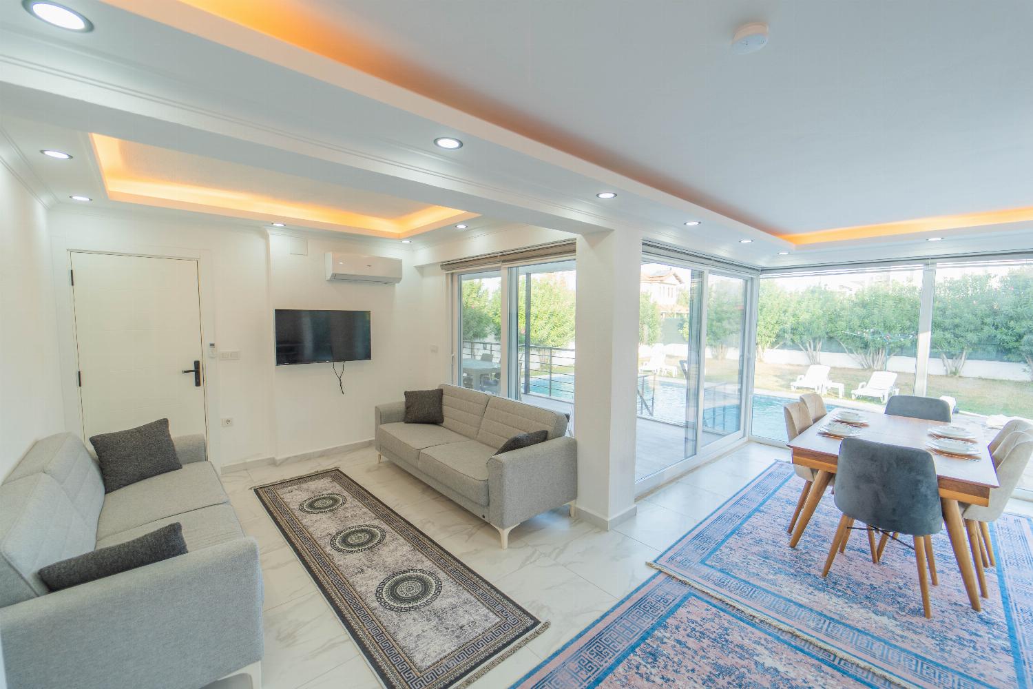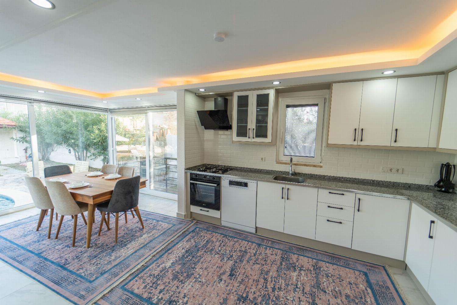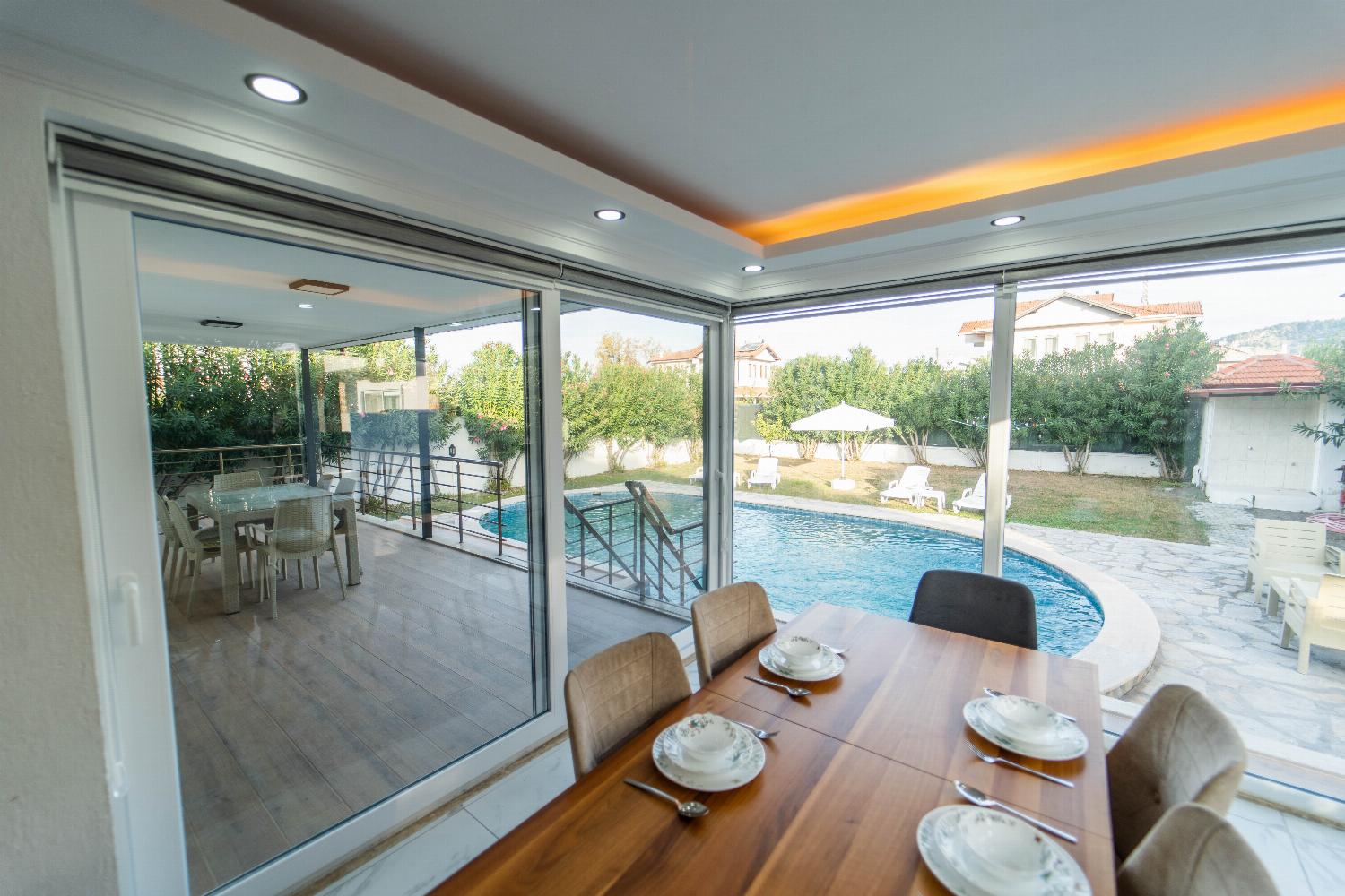 Villa Sena is a detached vacation rental property located in Dalyan, Dalaman Region. Villa Sena can sleep up to 8 people (6 adults and 2 children) with 3 bedrooms (additional 2 Double Sofa Beds) and 3 bathrooms. Offers air-conditioning and Free Wi-Fi. Enjoy your own private pool with barbecue.