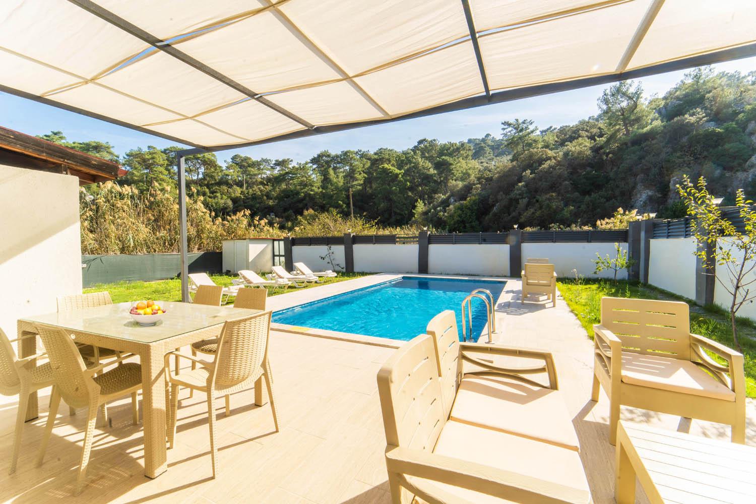 Villa Zara is a detached vacation rental property located in Yerbelen, Dalaman Region. Villa Zara can sleep up to 9 people (6 adults and 3 children) with 3 bedrooms (additional 3 single sofa beds) and 2 bathrooms. Offers air-conditioning and Free Wi-Fi. Enjoy your own private pool with barbecue.